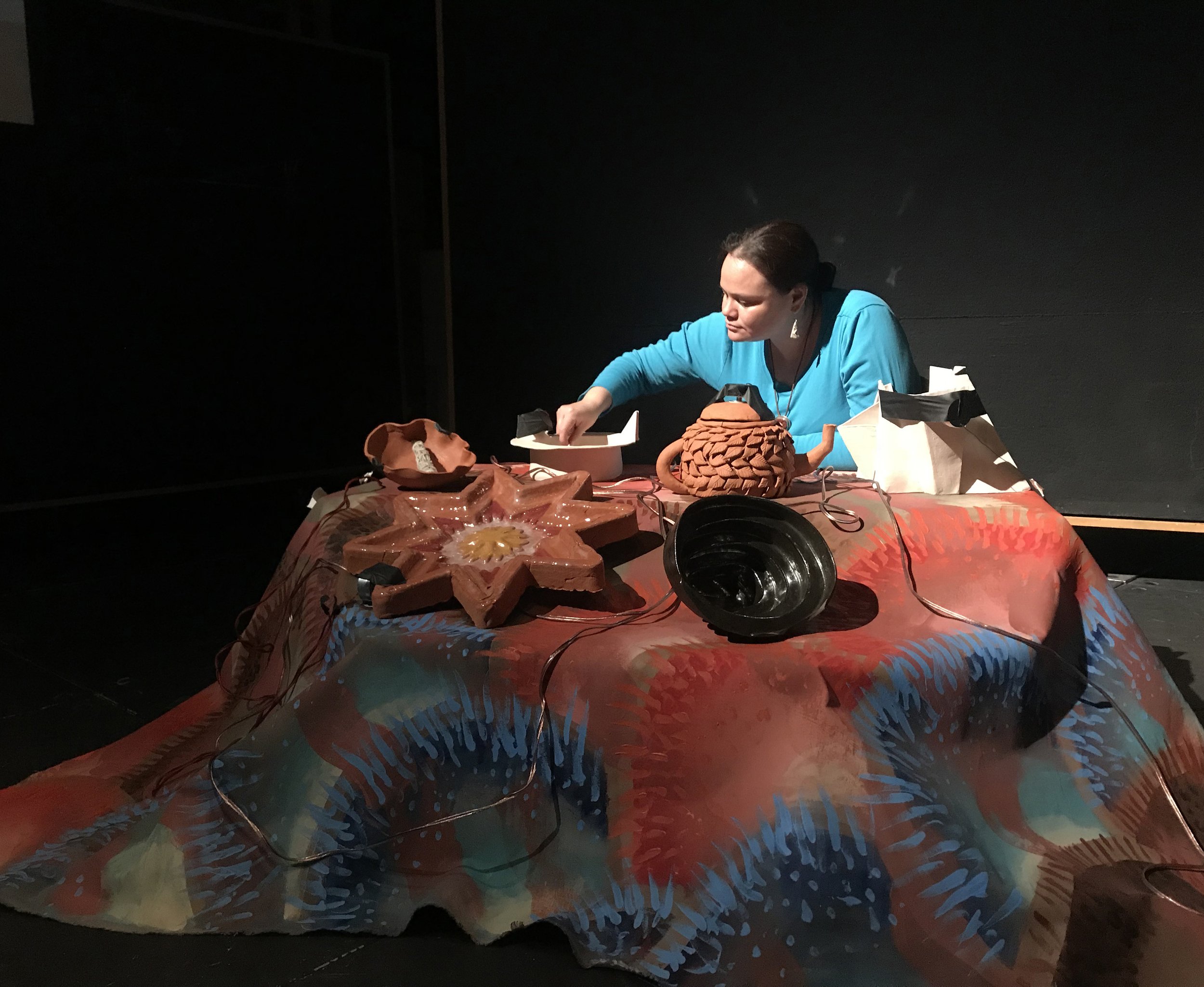 Artist Studios: Organizing spaces where participants can reclaim Indigenous techniques within tribally-guided protocols, including: digging local clay, traditional pit firing, gathering/preparing fibers for weaving, wood/stone/shell carving, quillwork and beadwork, natural dyes/pigments, and sustainable multi-media practices